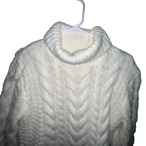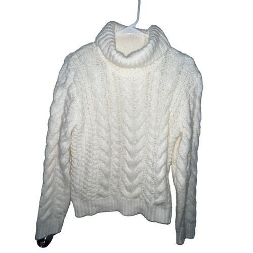 Harper Heritage Ivory Cable Chunky Knit Turtleneck Pullover Sweater Women Small
