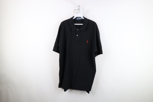 Vtg 90s Ralph Lauren Mens XL Faded Pique Cotton Collared Golf Polo Shirt Black