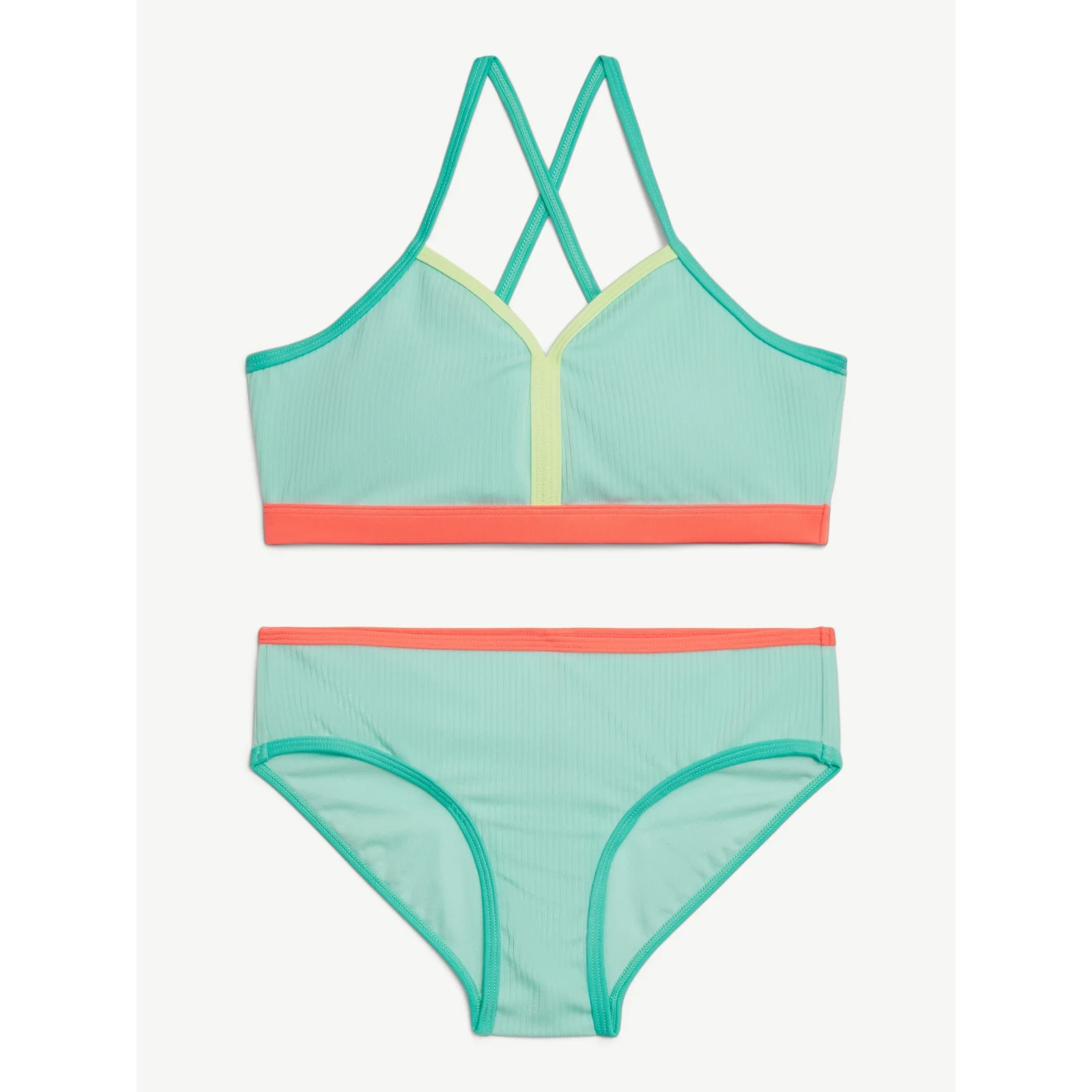 Justice Girls Two-Piece Bikini with Cross Back Straps, Mint Size XS(5/6)