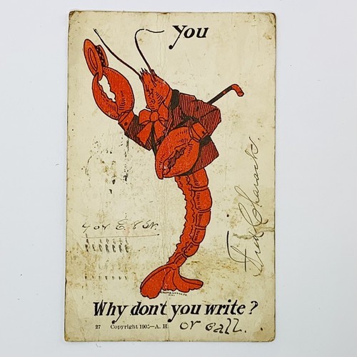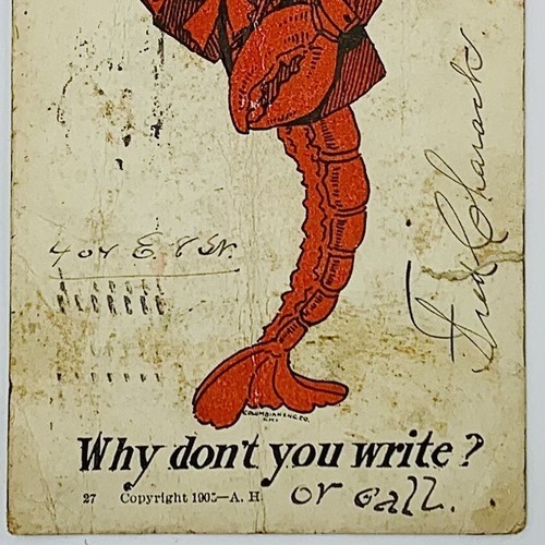 Anthropomorphic Lobster Vintage Postcard 1905 Why Don’t You Write? Posted NY