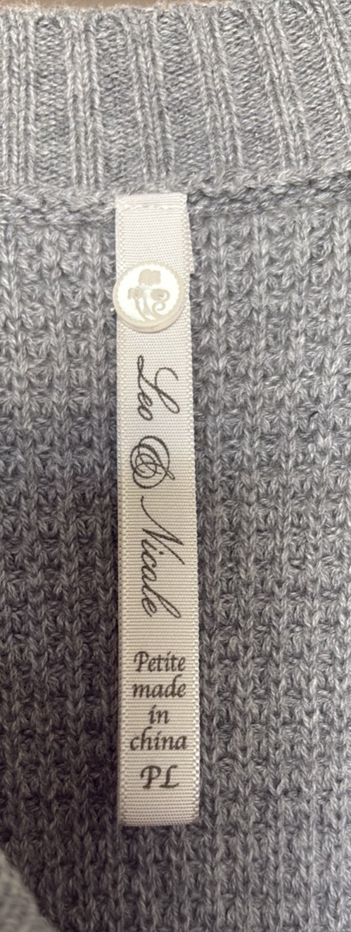 Leo Nicole Gray Knit Sweater with Button Detail Size PL. Stylish gray knit sweater featuring button detail on the shoulder. Perfect for a cozy look. Armpit to armpit measures 20?. Shoulder to hem is 28?. 93% Cotton, 6% Nylon and 1% Spandex. Hand Wash. NWOT - never worn - Excellent Condition - See photos for further description.