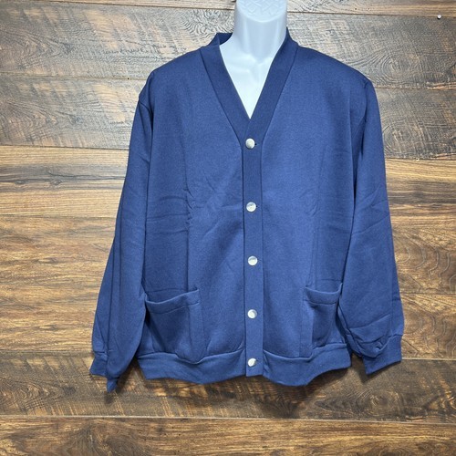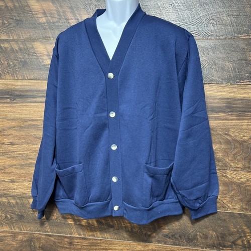 Vtg Sweatshirt Cardigan Button Up Vermont Country Men XL Blue Fleece Grandpa