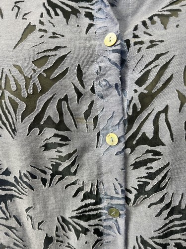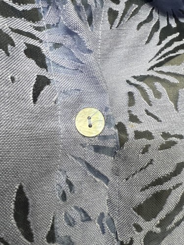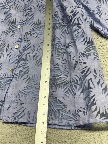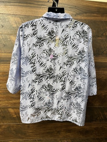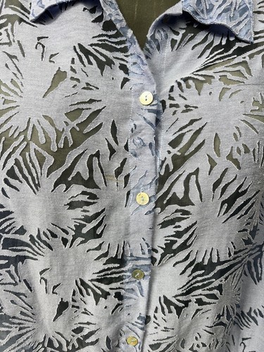 Maggie Barnes Shirt Women Sz 22 Sheer Tunic Leaves Floral Tropical Buttons Blue