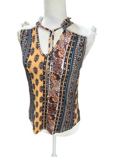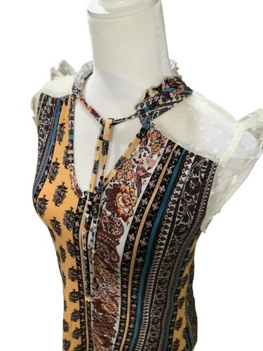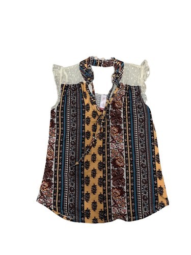 No Boundaries Pull-Over Blouse XS Size 1 Sleeveless Lace Shoulders V-Neck