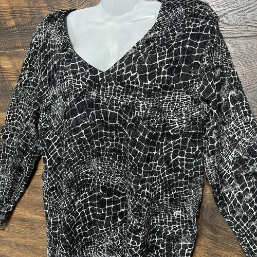 Vintage Chicos Design Top Womens 2 USA Black Geometric Print 3/4 Sleeve Blouse