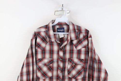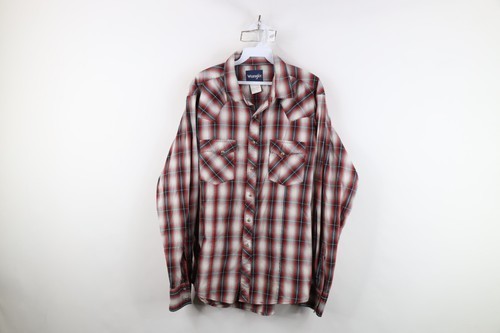Vintage Wrangler Mens Large Faded Western Rodeo Cowboy Snap Button Shirt Plaid