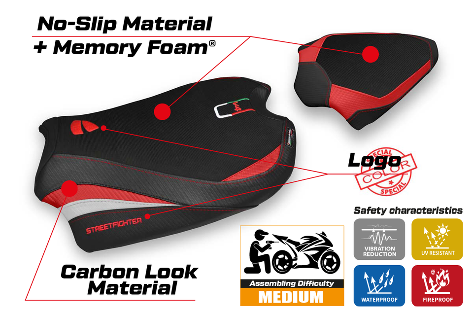 Ducati Streetfighter V4 Seat Cover Tappezzeria 2020-2024 Comfort Red White Black