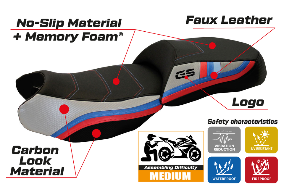 BMW R1200GS 2013-2017 2018 Comfort Heated Seat Cover Tappezzeria Silver Black