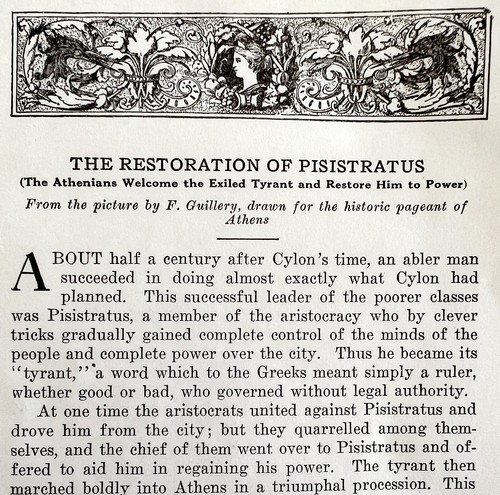 The Restoration Of Pisistratus 1913 Greek Plate Print 2 Page History DWAA14
