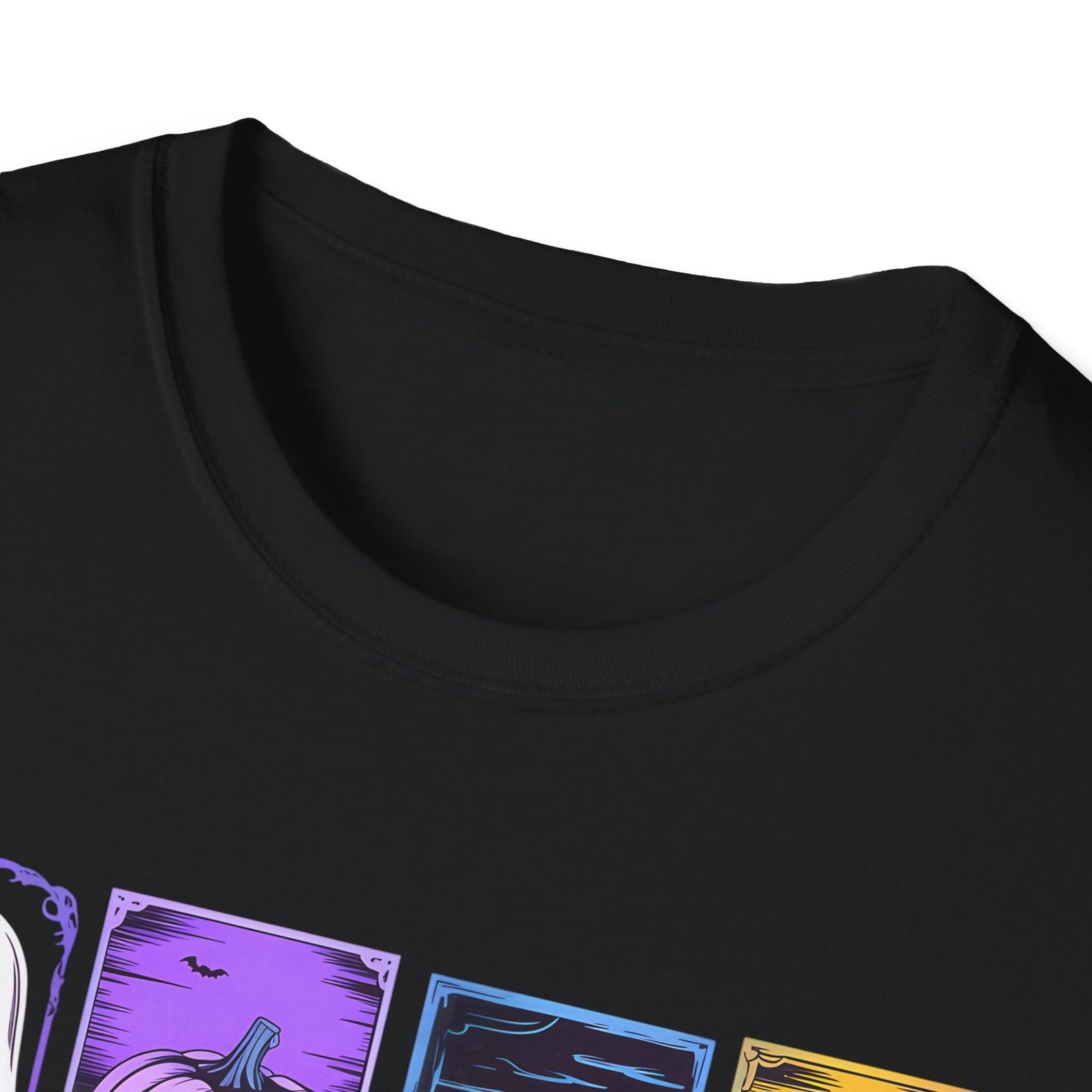 Embrace the spooky spirit with this stylish Unisex Softstyle T-Shirt, perfect for Halloween enthusiasts and anyone looking to celebrate the fall season. The vibrant design features iconic Halloween imagery that brings about a festive atmosphere, making it an ideal choice for costume parties, pumpkin patches, or cozy gatherings with friends. This t-shirt offers comfort and versatility, easily paired with jeans or shorts for a casual look. The lightweight fabric ensures a delightful wearing experience all year round. It's a wonderful addition to any wardrobe, especially during the Halloween season and other fall festivities, making it a great gift for friends and family alike. Perfect for expressively showing off your Halloween spirit! Product features - Made without side seams for a cleaner aesthetic and reduced fabric waste. - Elastic ribbed collar retains its shape for long-lasting wear. - Includes shoulder tape for extra stability and comfort. - Crafted from 100% ring-spun cotton for a soft, lightweight feel. - Available in various fabric blends for versatile styling options. Care instructions - Do not dry clean - Do not bleach - Tumble dry: low heat - Iron, steam or dry: low heat - Machine wash: cold (max 30C or 90F), with similar colors EU representative: HONSON VENTURES LIMITED, [email protected], 3, Gnaftis House flat 102, Limassol, Mesa Geitonia, 4003, CY Product information: Gildan 64000, 2 year warranty in EU and Northern Ireland as per Directive 1999/44/EC Warnings, Hazard: For adults, Made in Bangladesh