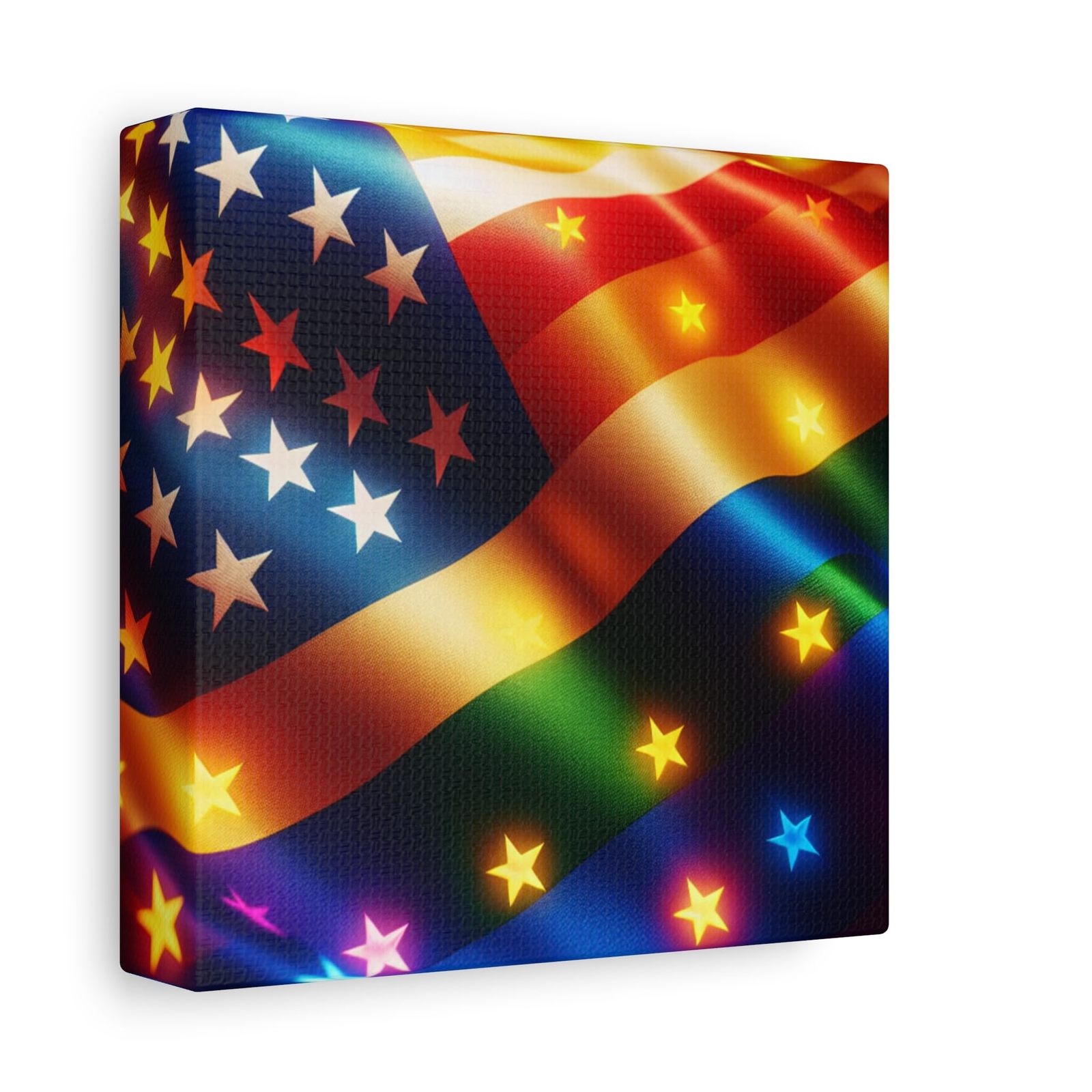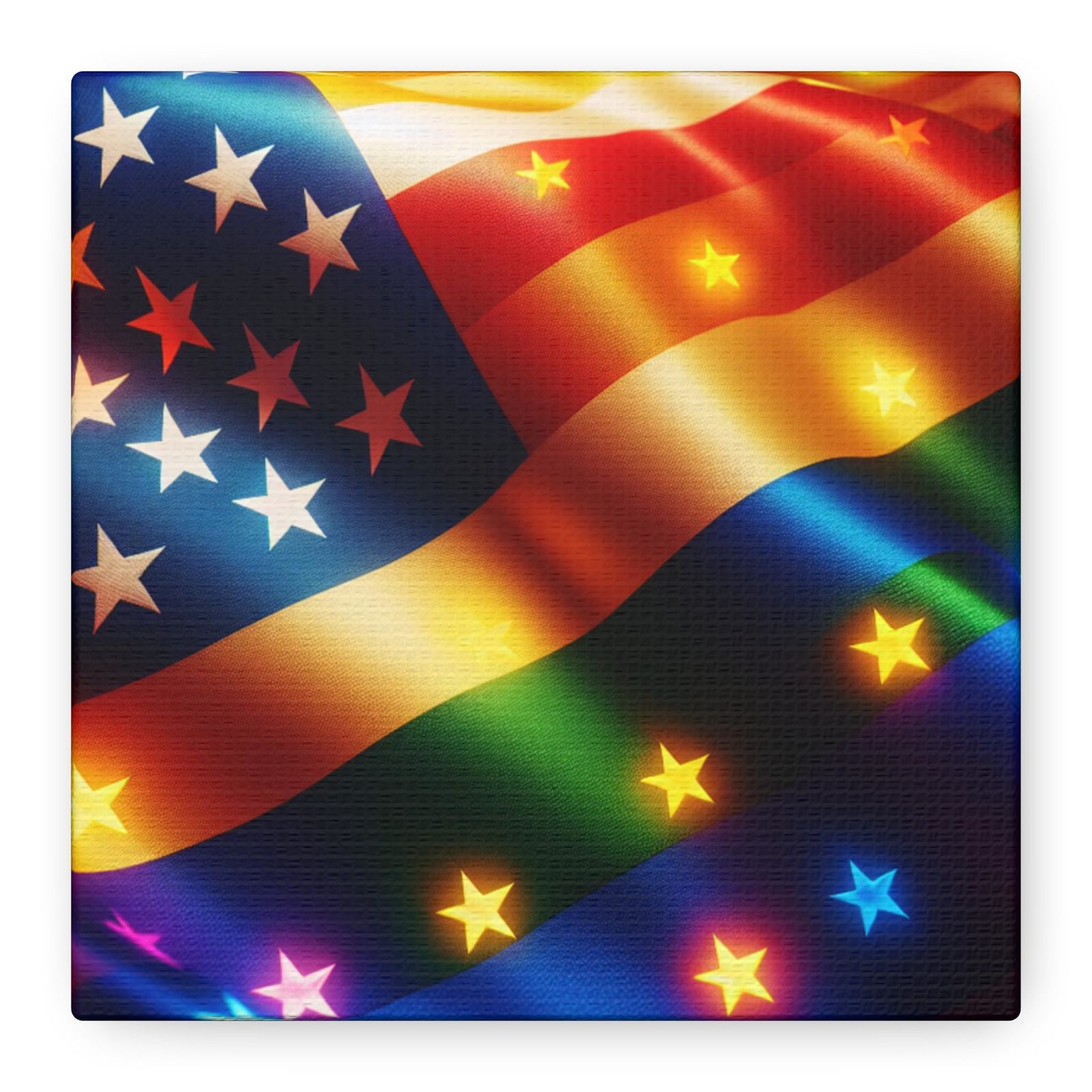 Vibrant Flag Canvas Art, Home Decor, LGBTQ Pride, Patriotic Artwork, Colorful Wa