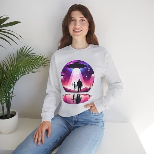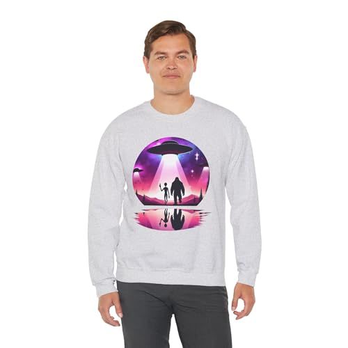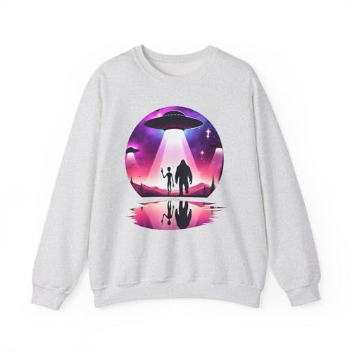 Bullet point: ? Epic UFO Bigfoot Design ? This Alien and Bigfoot sweatshirt blends cryptid mystery with extraterrestrial vibes, perfect for fans of the unexplained.