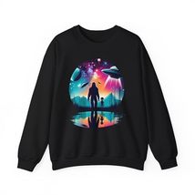Alien and Bigfoot Sweatshirt, Sasquatch Unisex Crewneck, Dreamy Cosmic Art, Spac