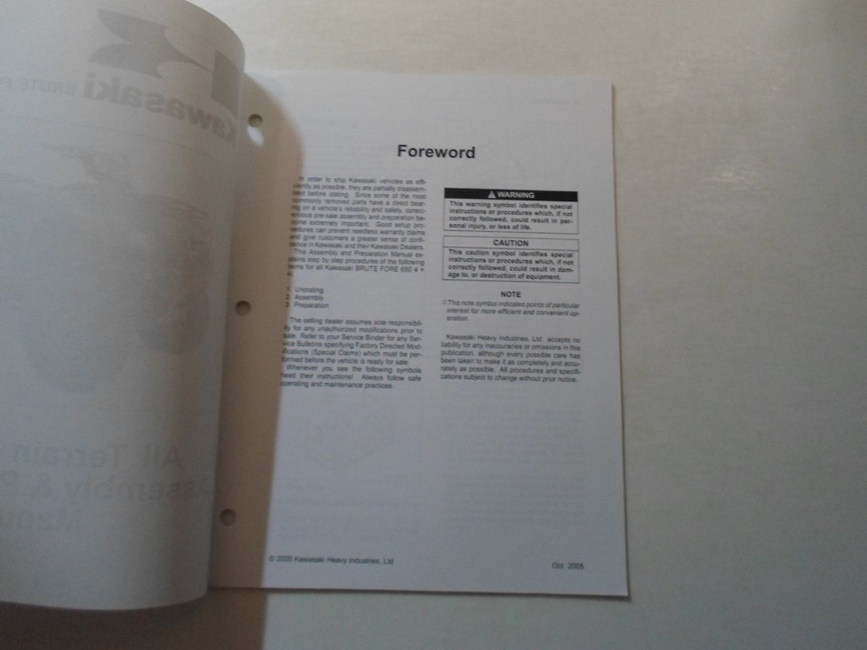 2006 Kawasaki Brute Force 650 4x4i MANUEL DE PREPARATION DE L'ASTRATION ATV
