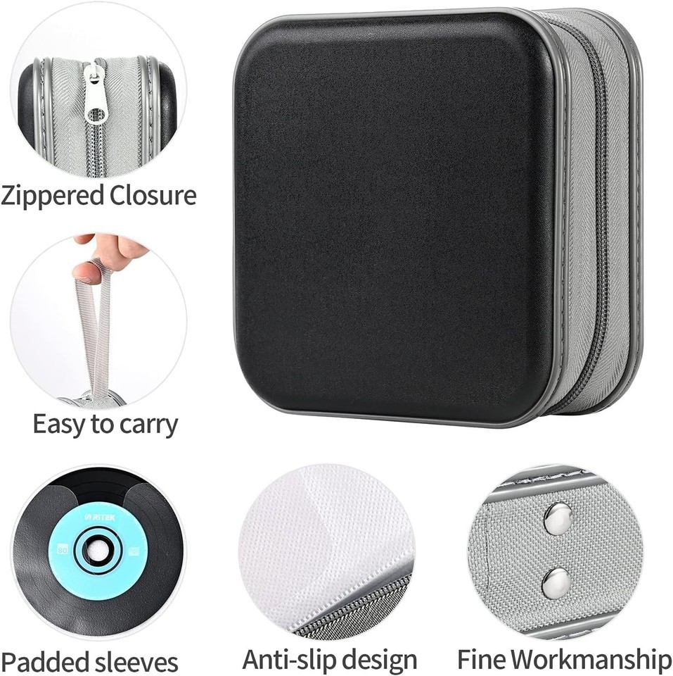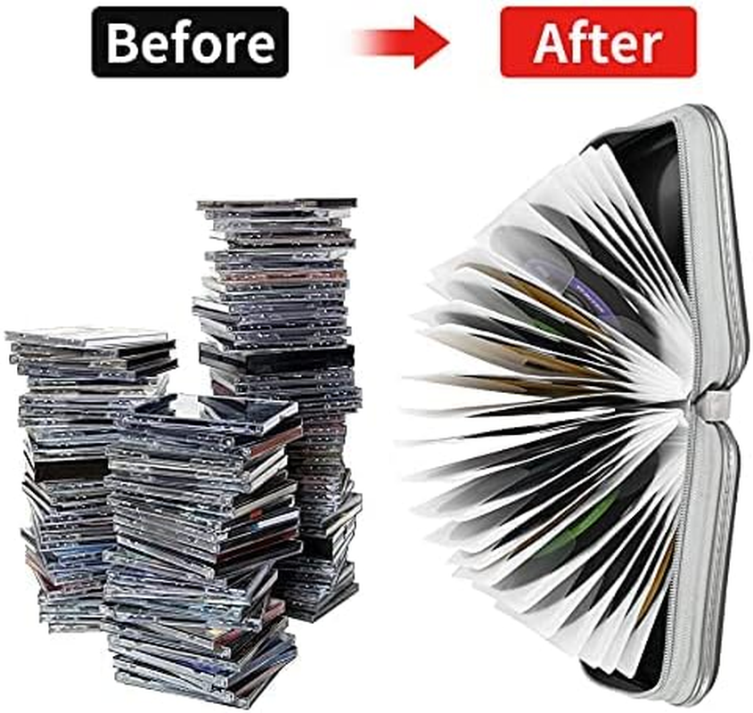 EASY TO CARRY:The dvd storage case can holder 48 capacity cds or dvds.Help you save a lot of space in your living room.When you are on business or traveling,it can also be placed in the glove box of the car or in the suitcase.