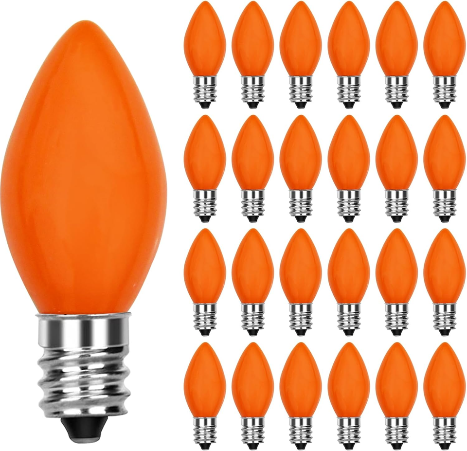 25 Pack C7 LED Halloween Orange Replacement Lights Bulbs,