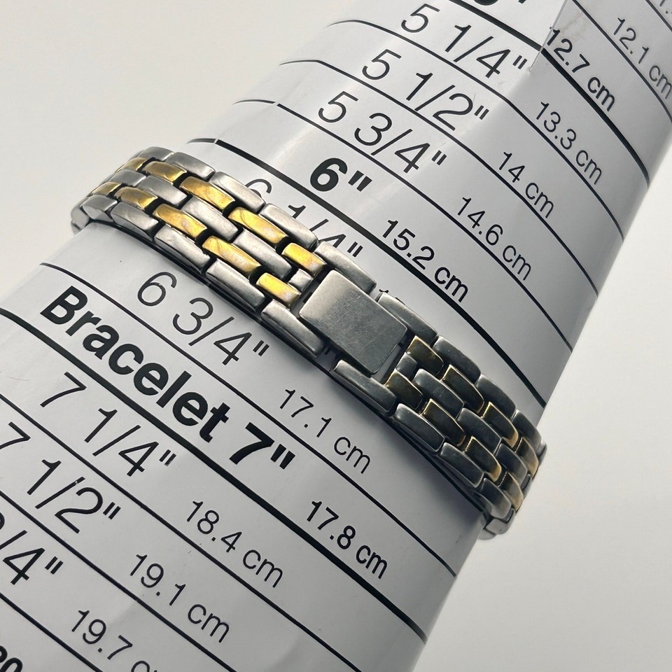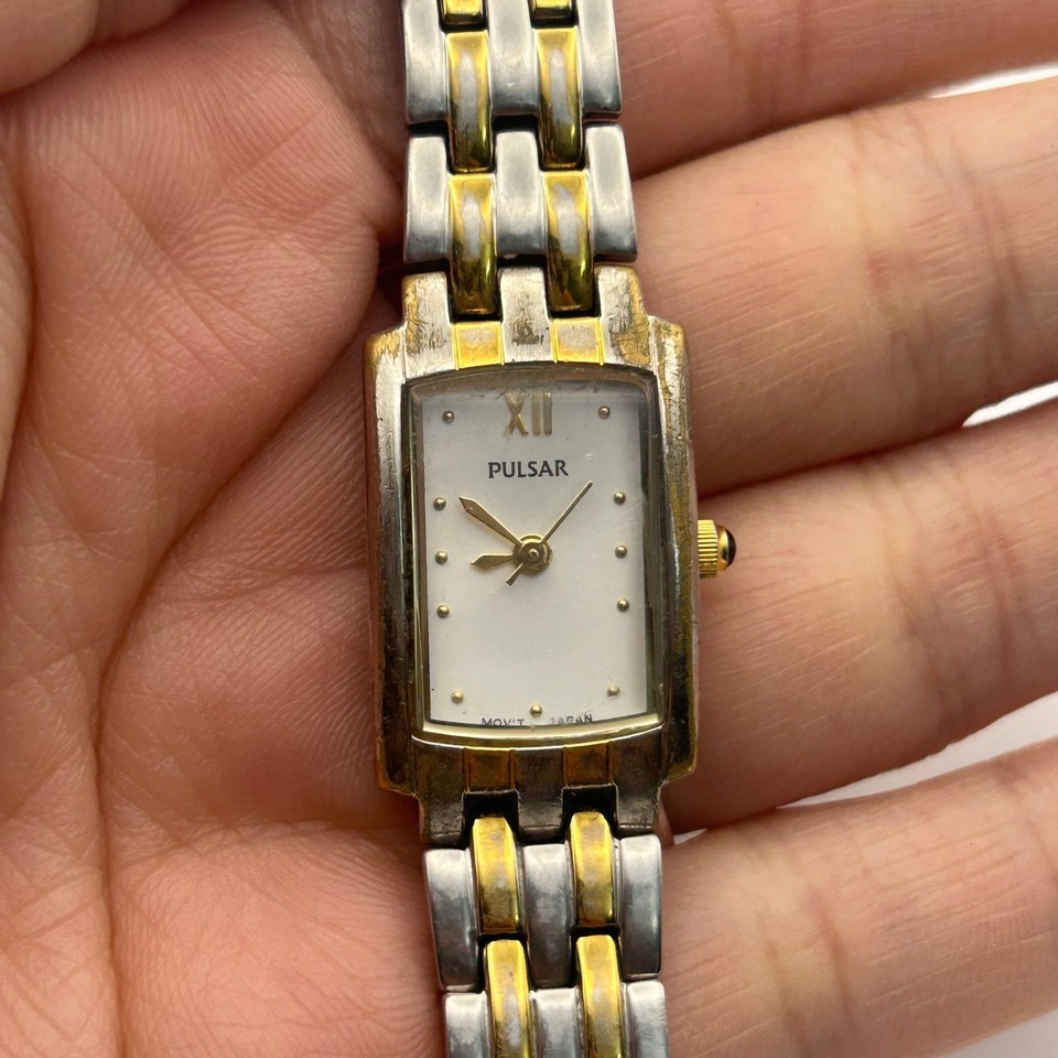 This beautiful Pulsar women's watch features a stunning combination of silver and gold tones in a durable stainless steel design. The watch is in excellent condition and has been well-maintained. It's perfect for adding a touch of elegance to any outfit. The watch has been recently serviced and a new battery has been installed. You'll love the way this watch looks and feels on your wrist! Don't miss out, get it now!