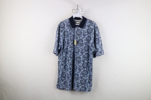 Deadstock Vtg 90s Y2K Streetwear Mens Medium Paisley Floral Golf Polo Shirt Blue