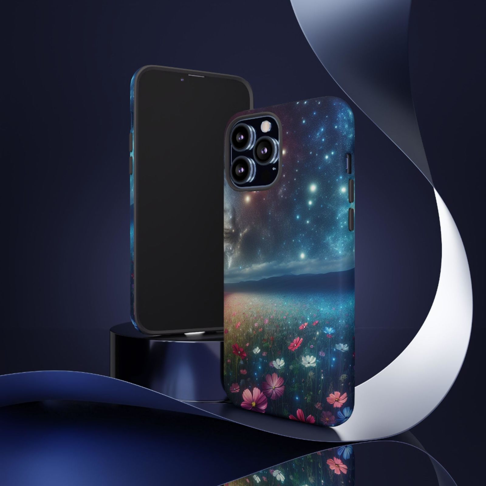 Celestial Wildflower Field Floral Phone Cases, Nature Inspired Aesthetics, Tough
