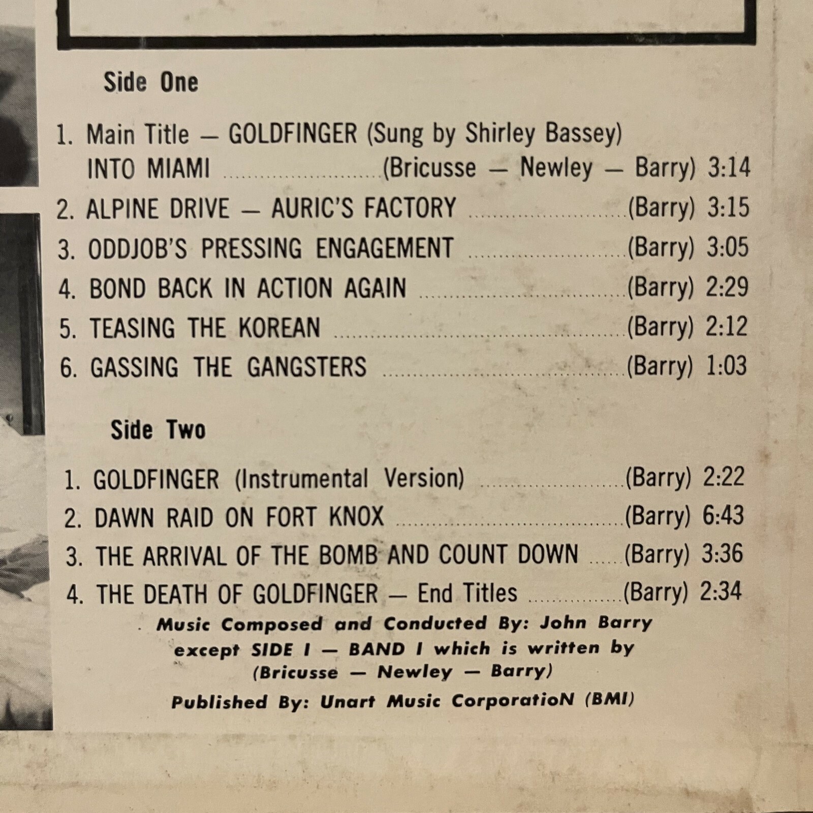 Goldfinger Soundtrack John Barry Vinyl LP UA UAS 5117 Shirley Bassey 1st Press