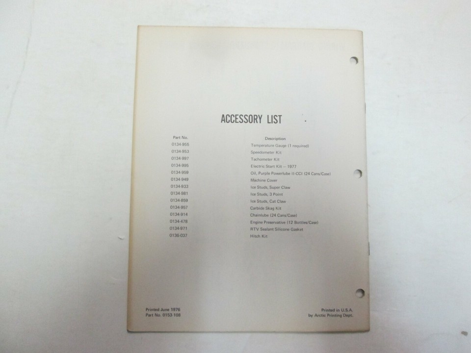 1977 Arctic Cat Cheetah Set Dessus Pre-delivery Instructions Manuel Usine OEM