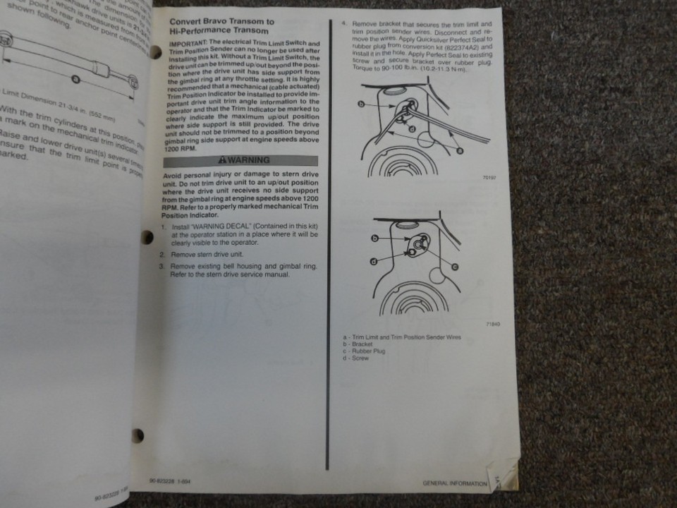 1994 Mercruiser #20 Blackhawk Stern Lecteur Unite Service Shop Manuel Eau Damage