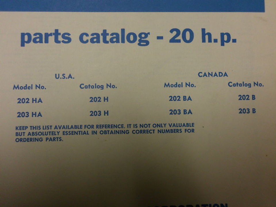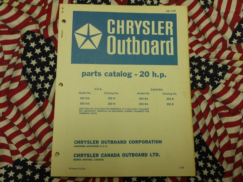 Un catalogue de pieces detachees Chrysler hors-bord 20 HP 1969. Pour les modeles 202 H, 203 HA. Quoi tu vois