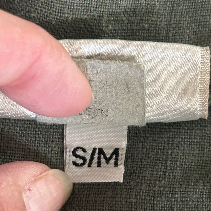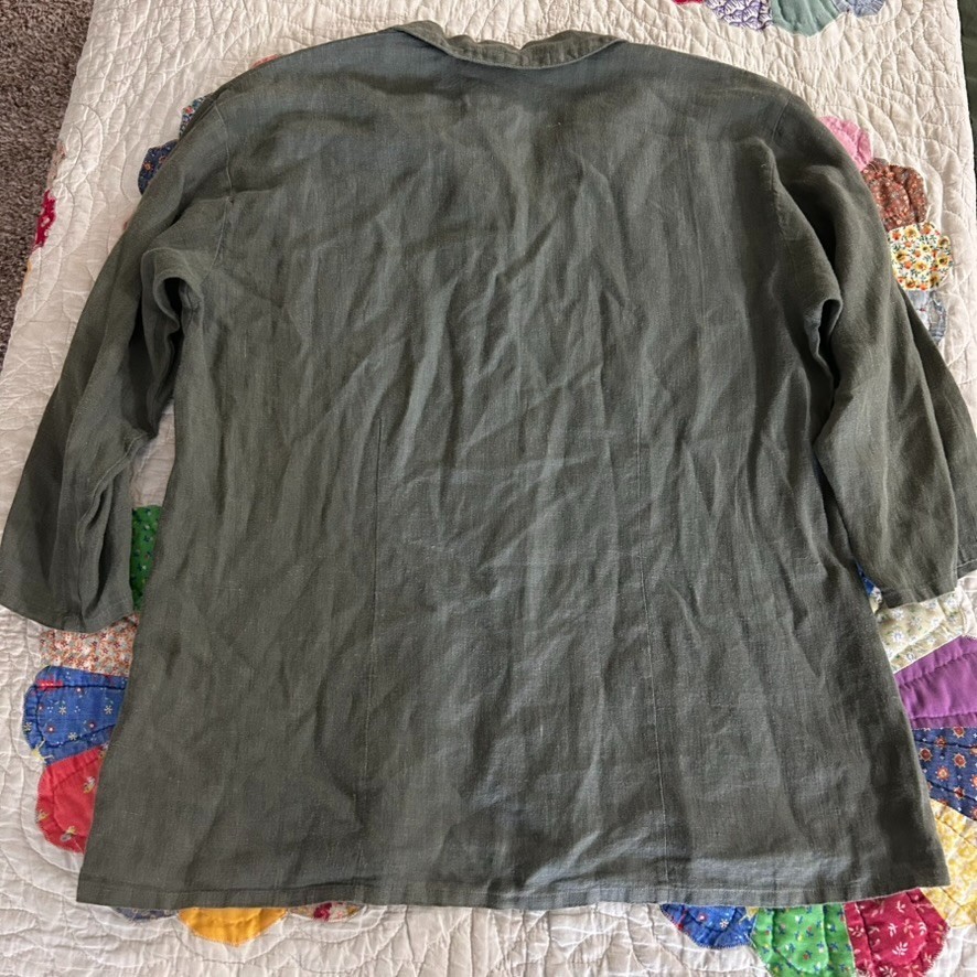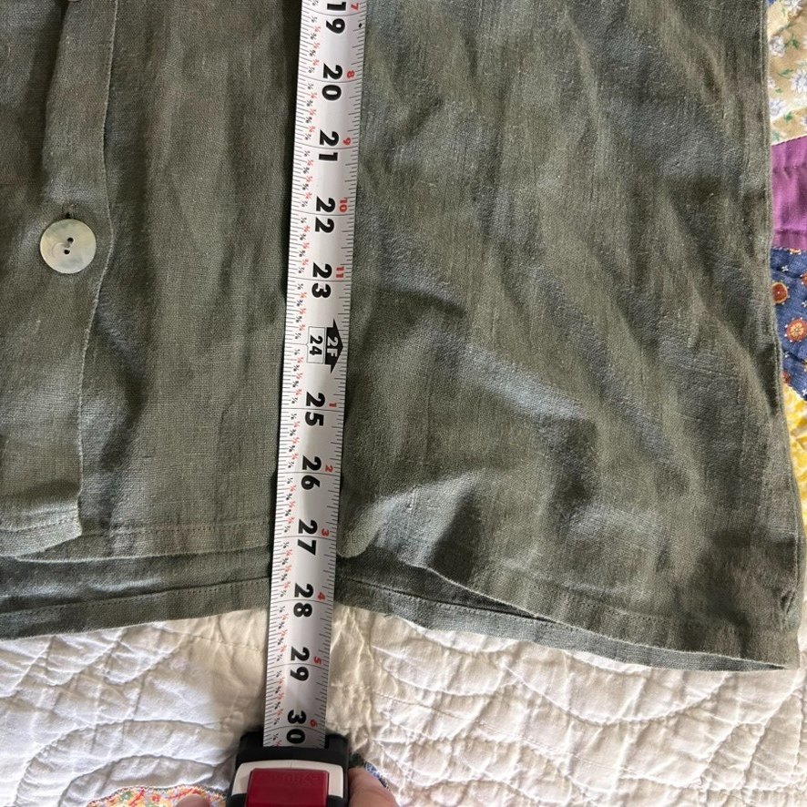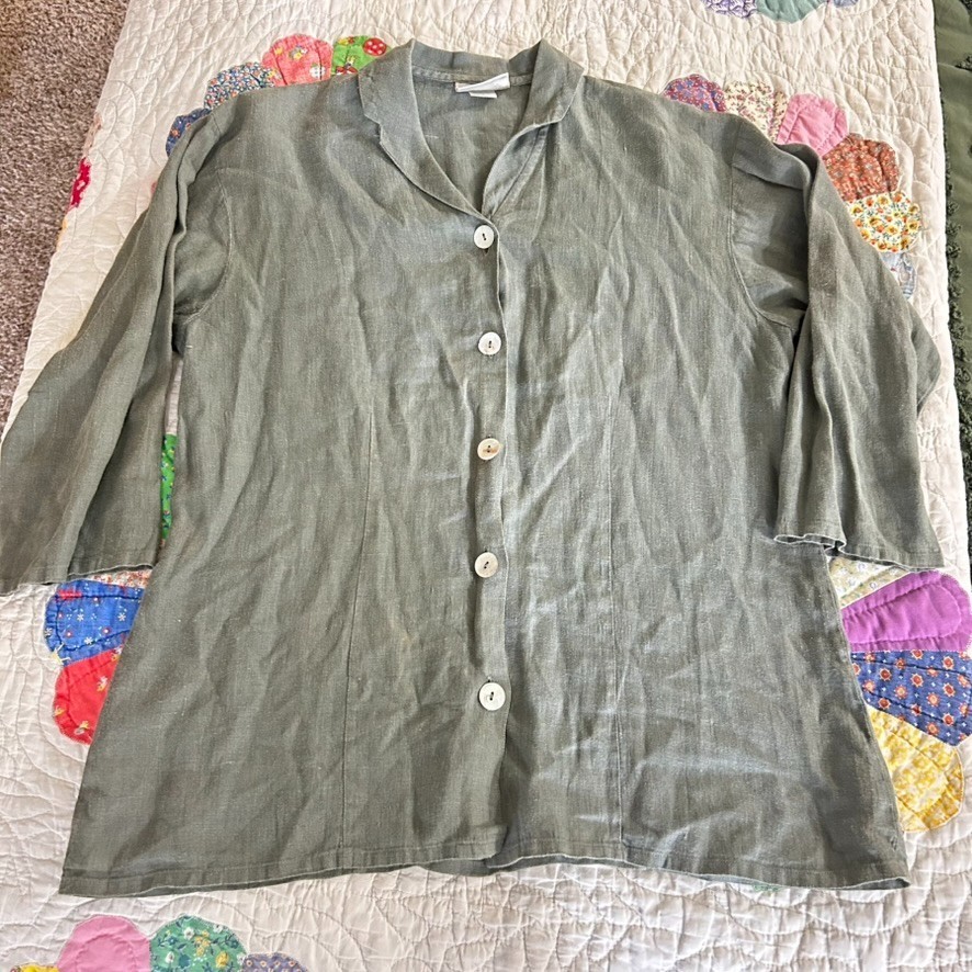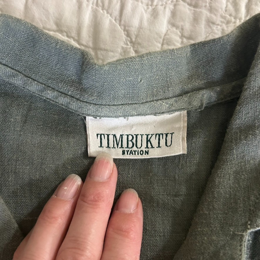 Timbuktu Station womens linen blouse L green boxy Lagenlook minimalist oversized