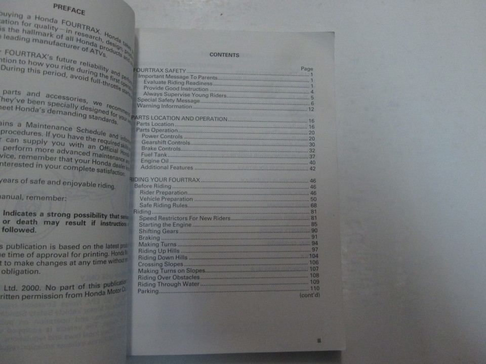1990 Honda TRX300 TRX 300 Operatori Proprietari Owner Manuale Nuovo