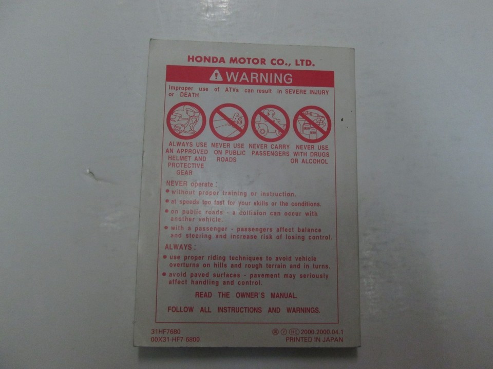 Nuovo Secondo Stampa 2001 Honda TRX90 Fourtrax 90 proprietari