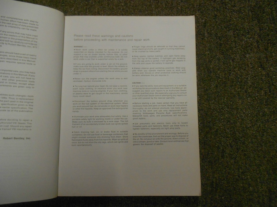 VW DASHER SERVICE SHOP MANUAL BOOK