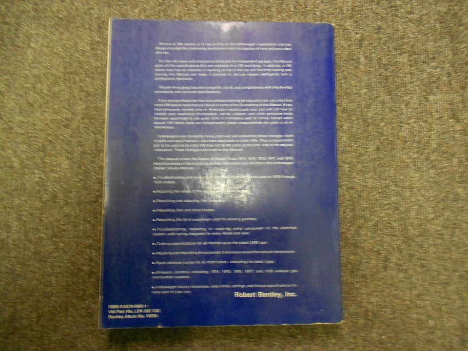 1974 1975 1976 1977 1978 VW Dasher Service Reparation Shop Manuel Usine Livre 74