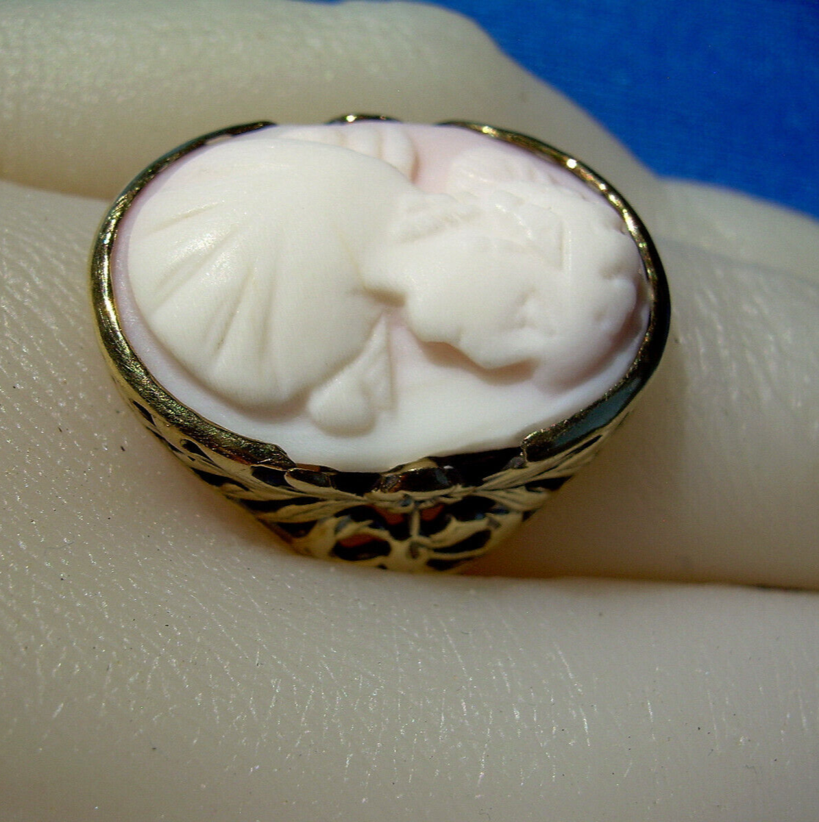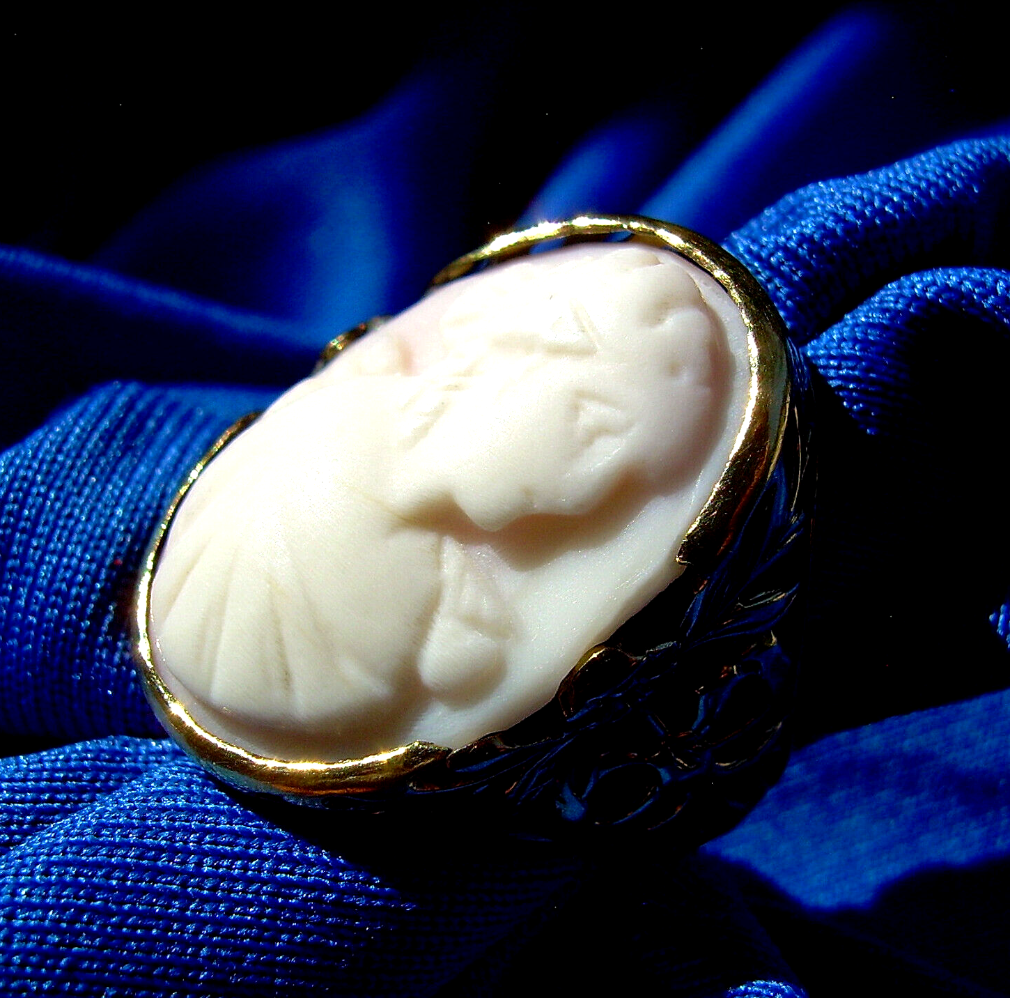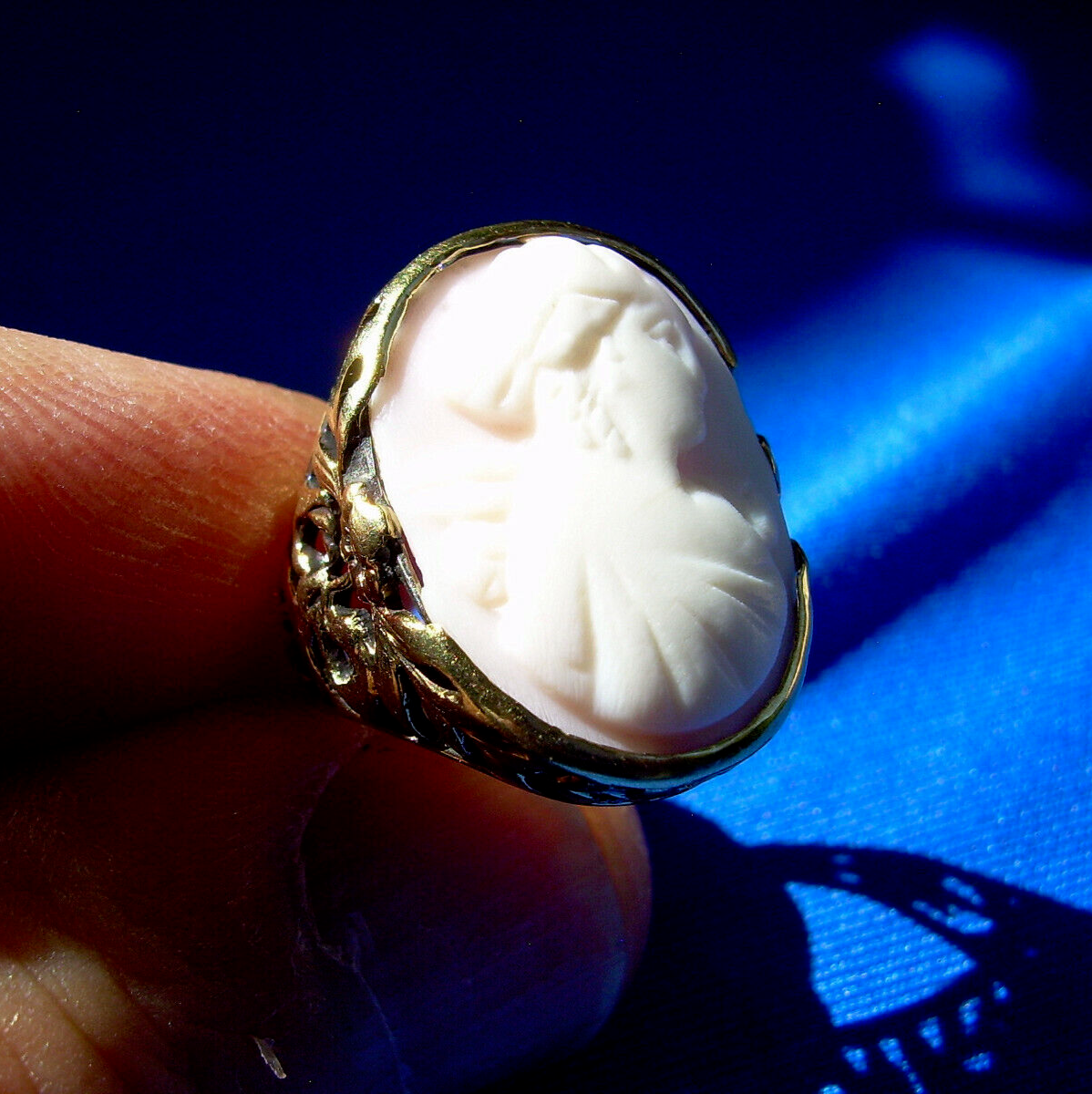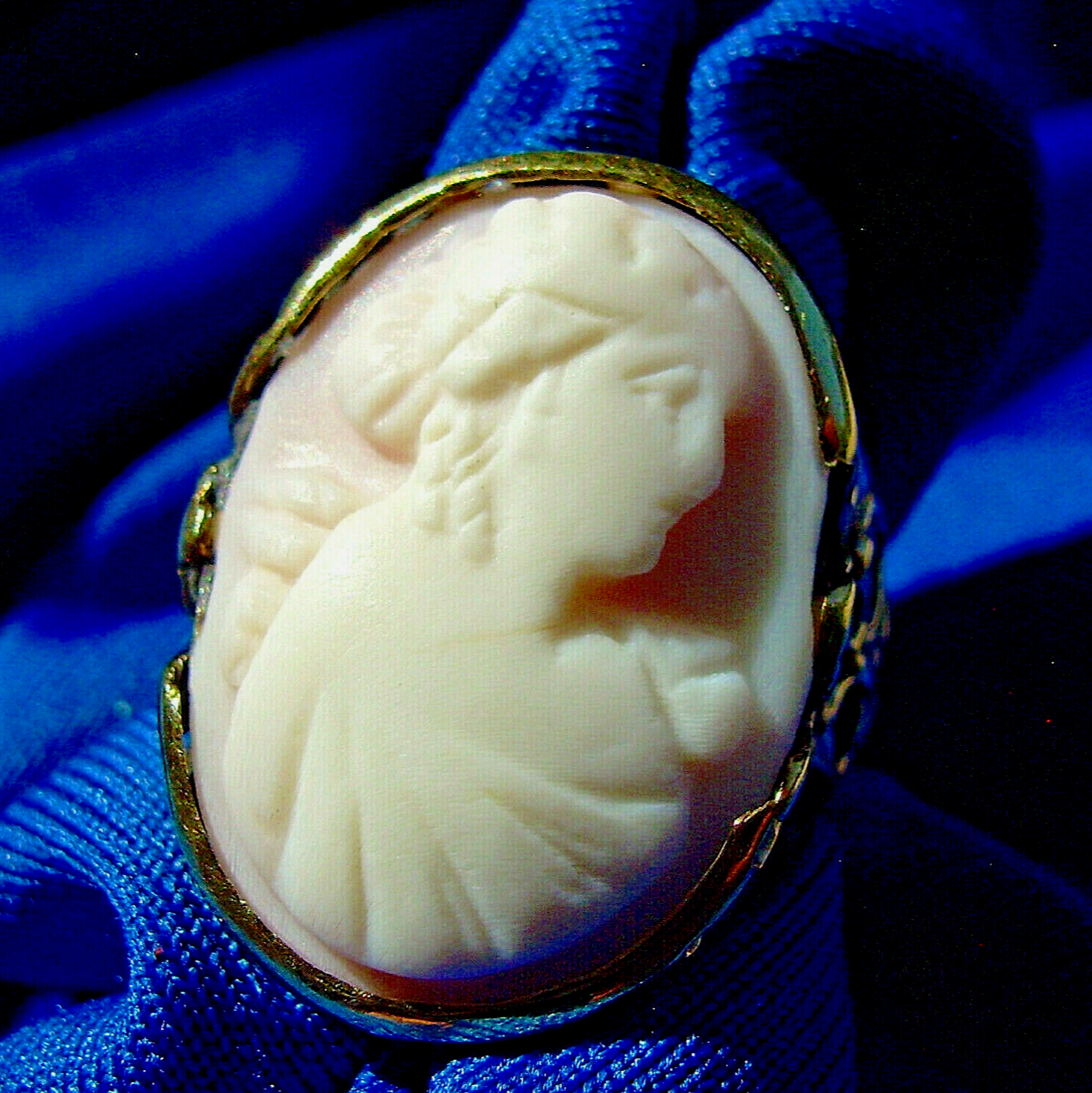 ANTIQUE CORAL CAMEO 14K GOLD STATEMENT RING.