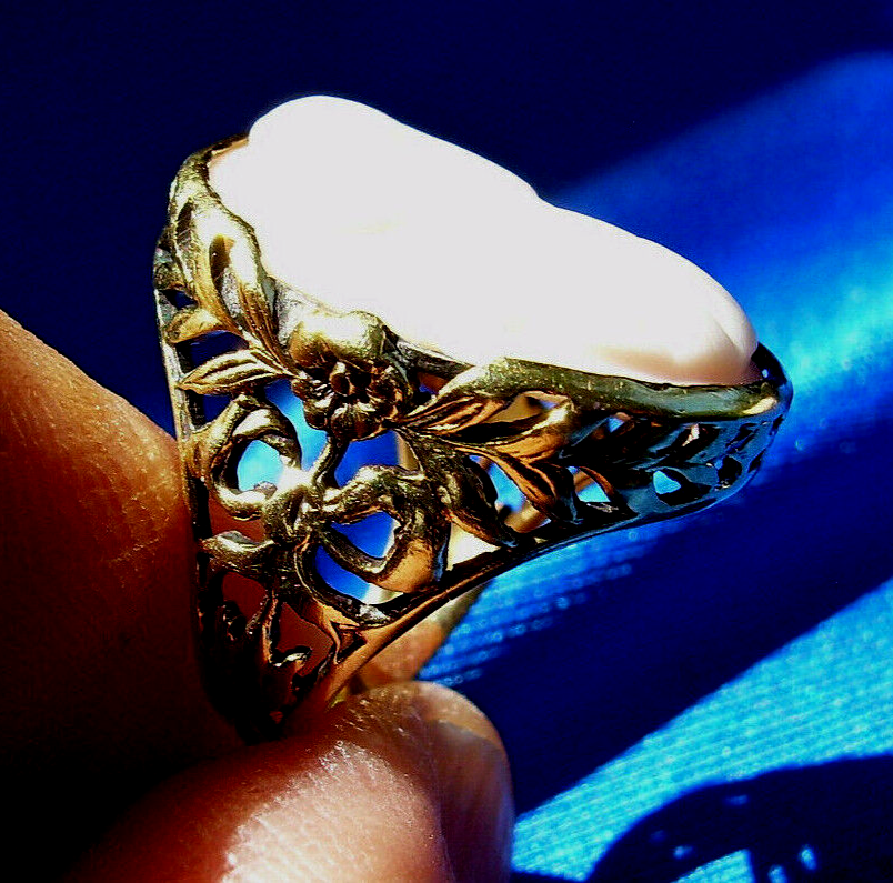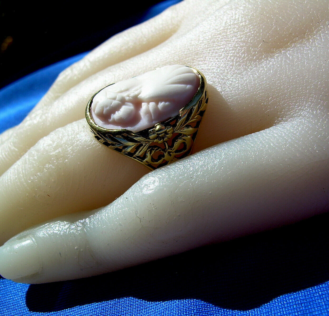 Victorian ring featuring beautiful European coral portrait in solid 14k gold.