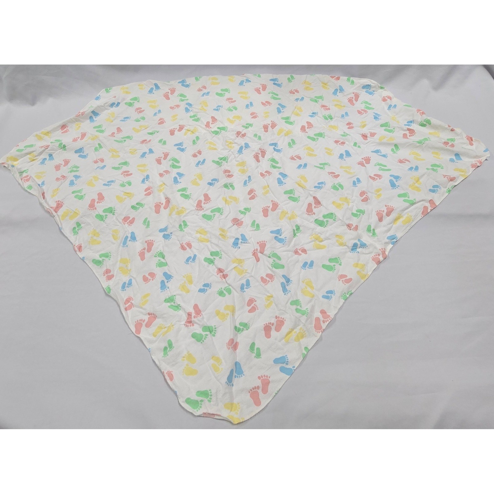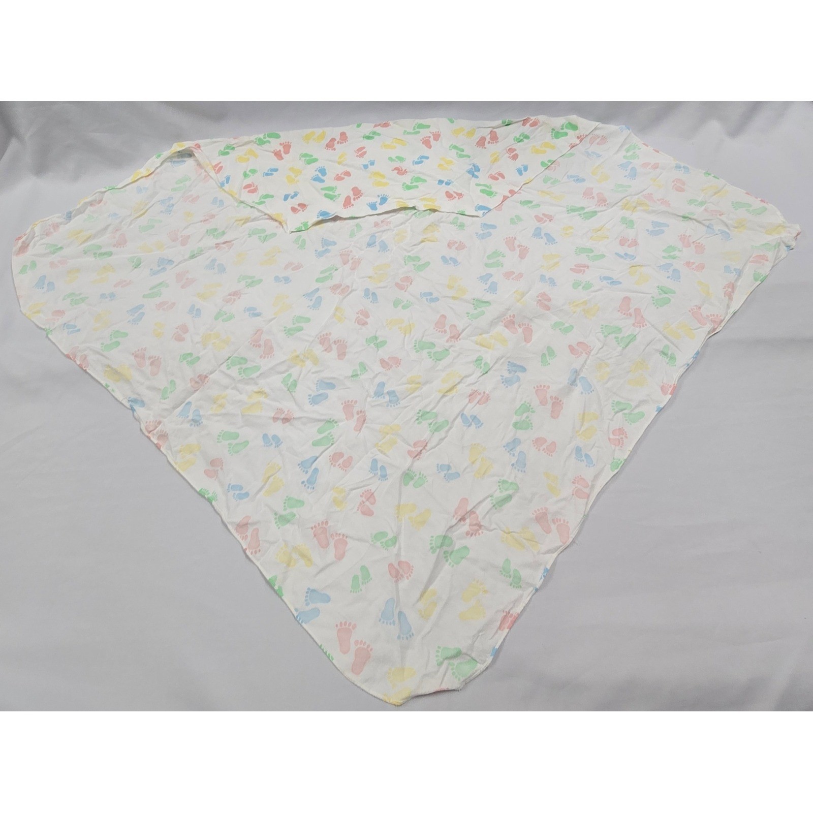 Baby Blanket White Footprint Print Flannel Receiving Swaddle Unisex Soft Wrap