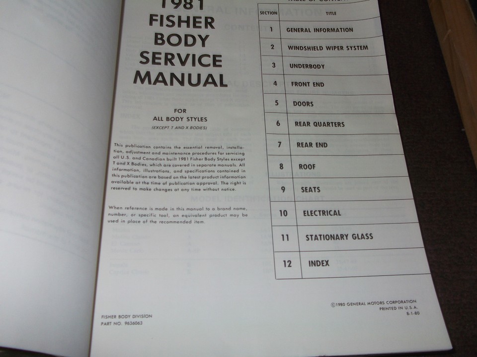 1981 PONTIAC TOUS LES MODELES MANUEL D'ENTRETIEN ET MANUEL DE CARROSSERIE FISHER