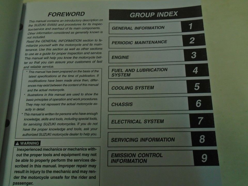 Informativo con illustrazioni, istruzioni passo-passo, assemblaggio/disassemblaggio, illustrazioni/diagrammi esplosioni/risoluzione dei problemi, ottimo manuale da avere quando possiedi un SV650/s e manterra la tua Suzuki sulla strada. Questo manuale ti fara risparmiare denaro in riparazioni/servizio.