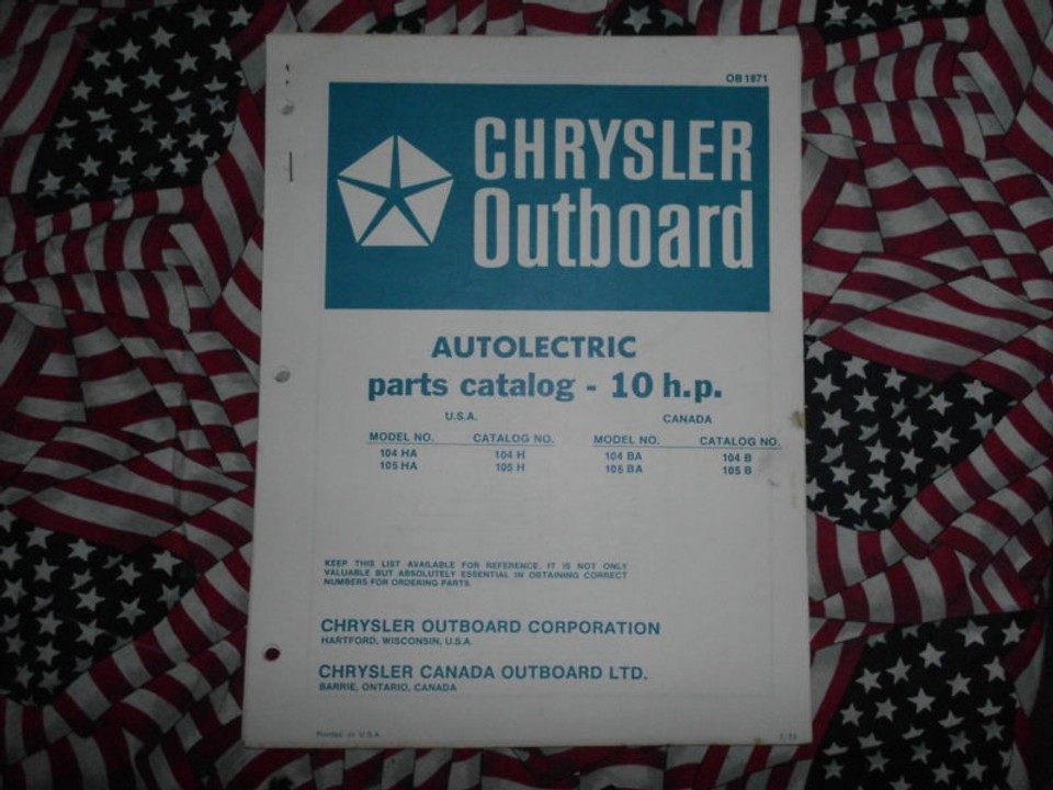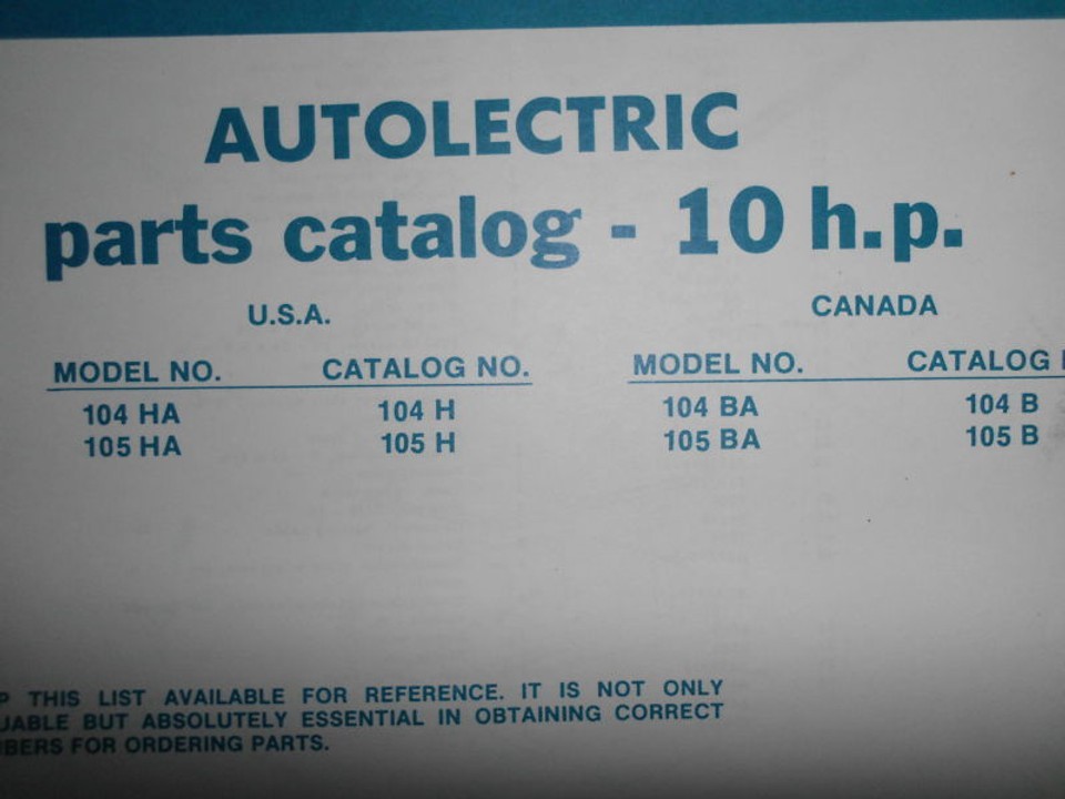 Un catalogue de pieces autolegectriques de 10 HP Chrysler en 1973. Pour les modeles 104 ha, 105ha, 104 b, 105 B. Quoi tu vois est quoi toi volonte recevoir, nous ne le faites pas Utiliser le stock