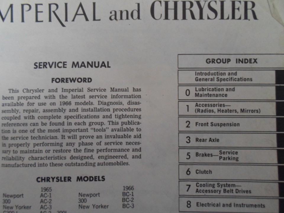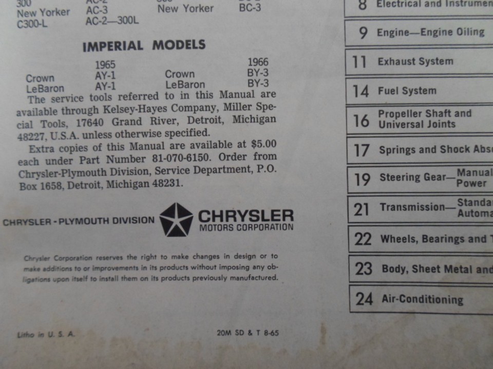 1965 Chrysler NEWPORT 300 Imperial Corona Lebaron, Servizio Negozio Riparazione