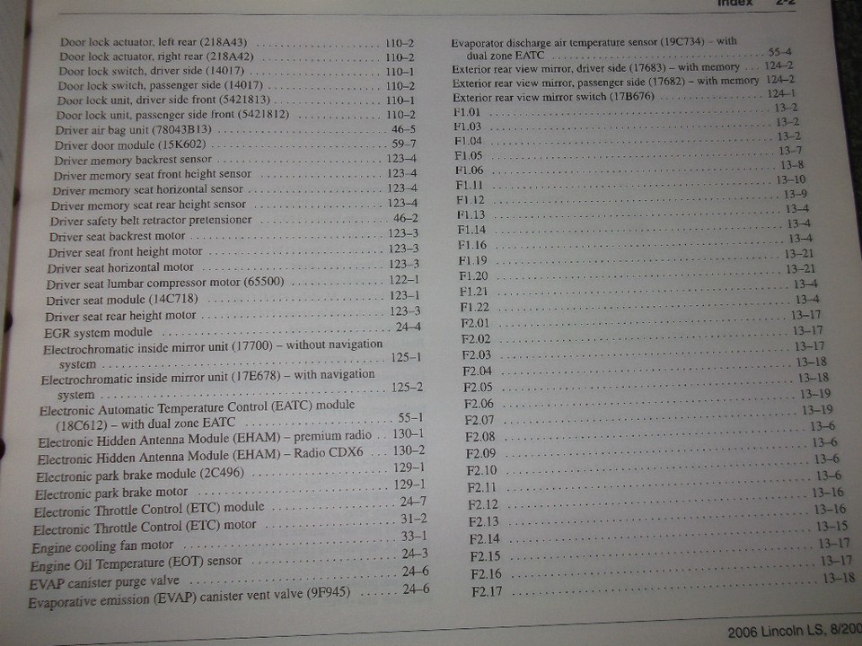 Manuale Di Riparazione Per Officina E Servizio Nuovo 2003 LINCOLN LS