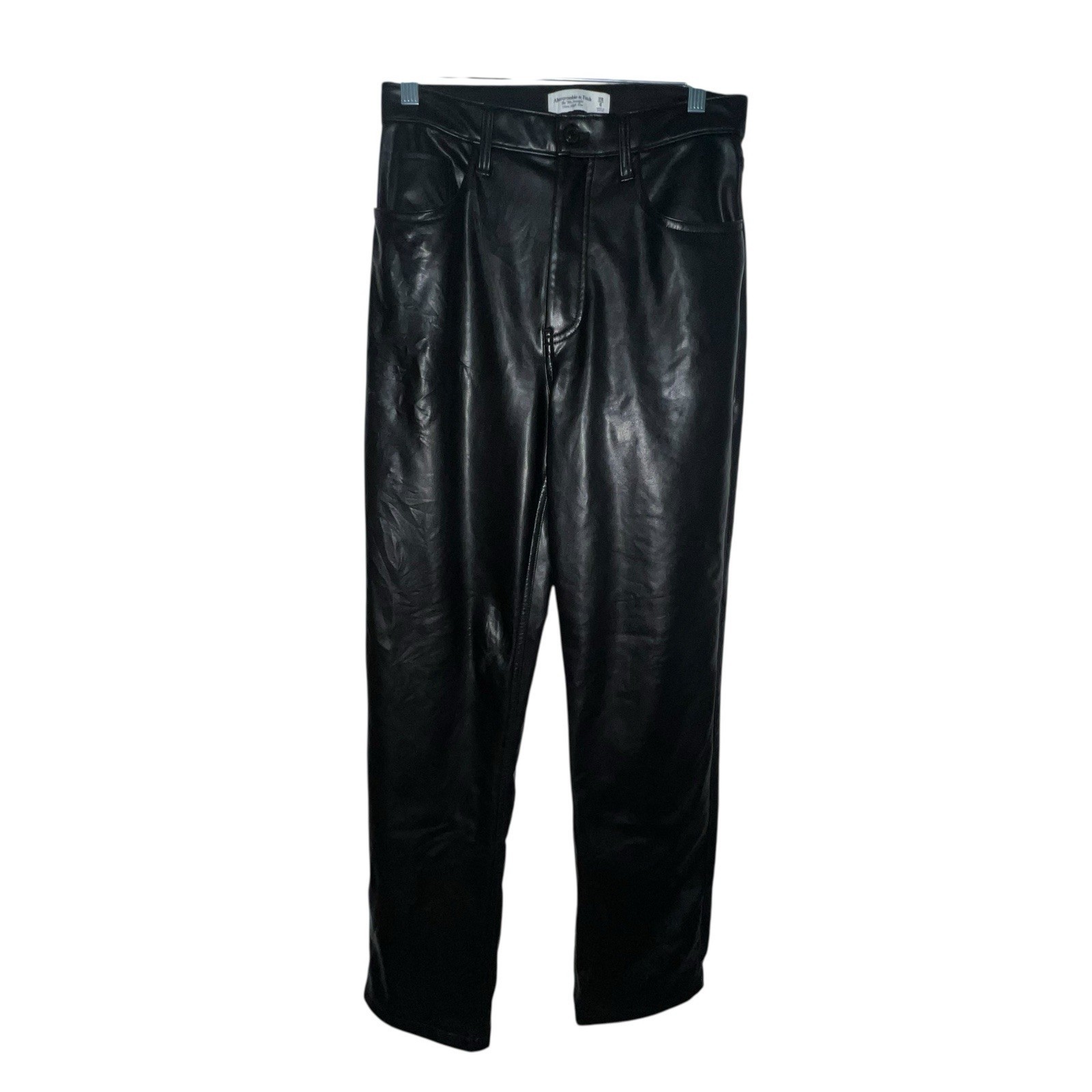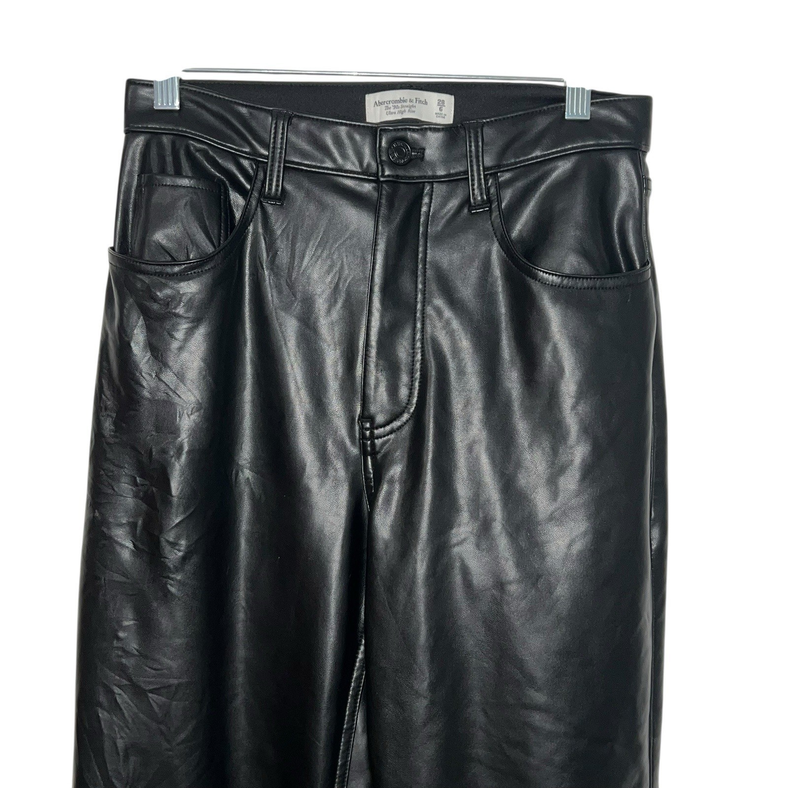 Abercrombie & Fitch The 90s Straight Ultra High Rise Black Faux Leather Pants 28