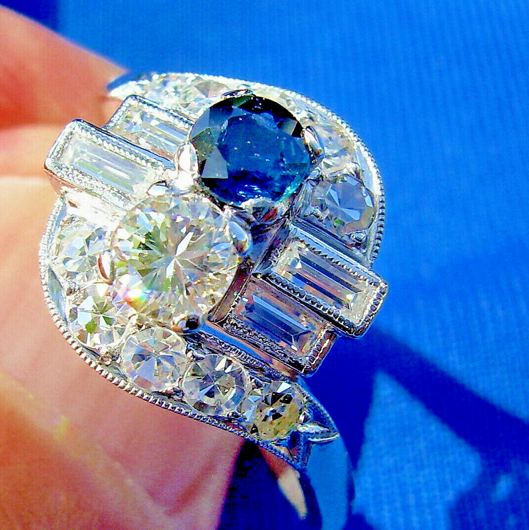 AMAZING TOI ET MOI PLATINUM DIAMOND SAPPHIRE GATSBY ERA STATEMENT RING.