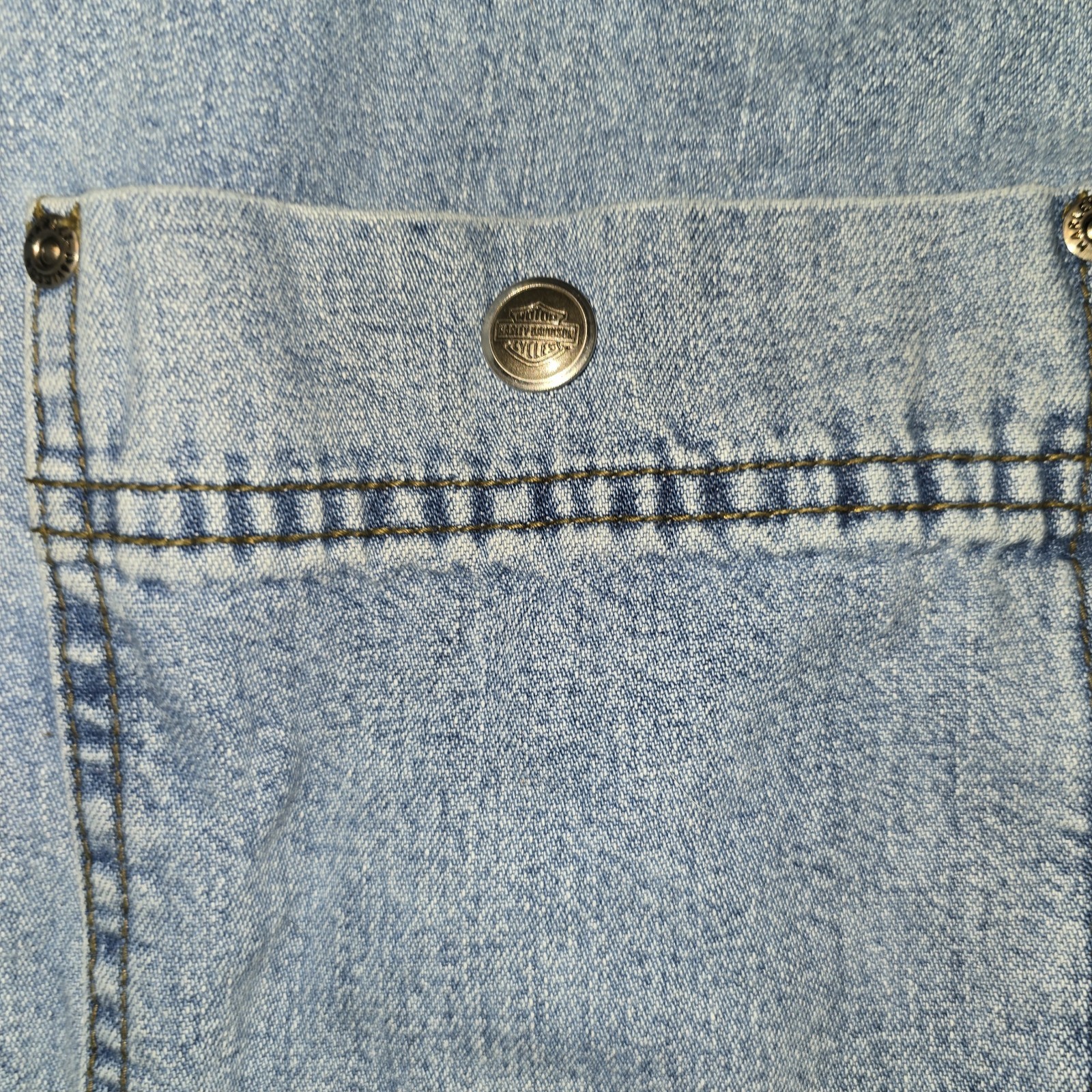 Made of high-quality cotton denim fabric, these overalls are perfect for everyday wear. The waist size is 34 inches, and the inseam is 28 inches long. Accentuated with the Harley-Davidson logo, these overalls are a great way to show off your love for the USA. Whether you're going for a classic look or something new and trendy, these overalls are a must-have for your collection.