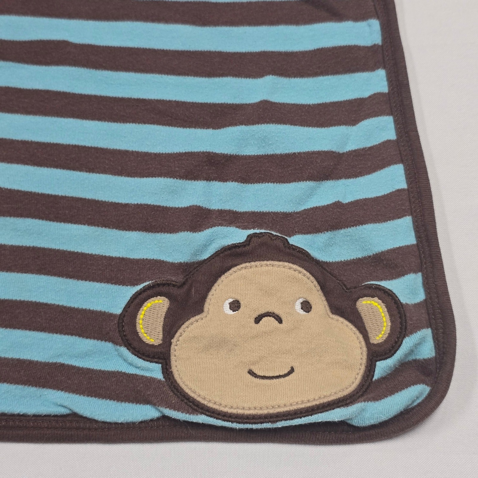 Carter's One Size Cotton Baby Blanket Lovey Blue Brown Stripe Monkey