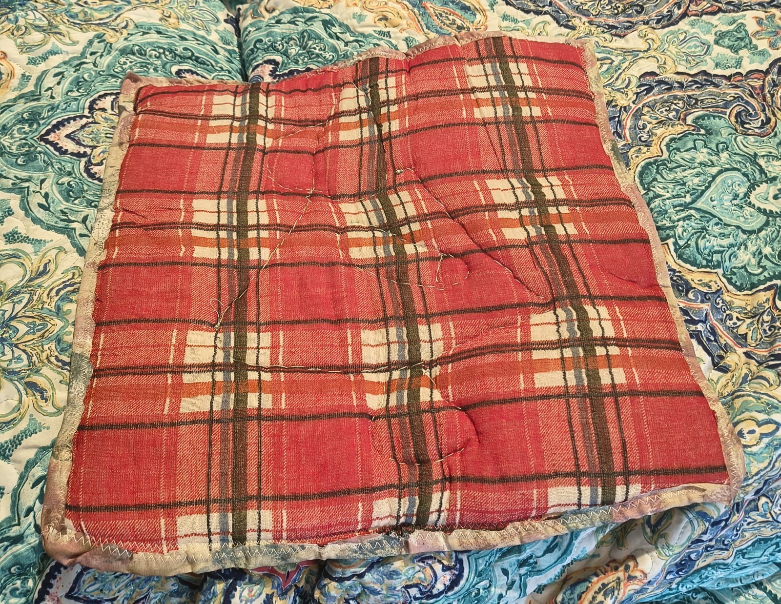 BONNET Girl Quilt Square Block Hand Sewn 13.5 Inch Floral Striped