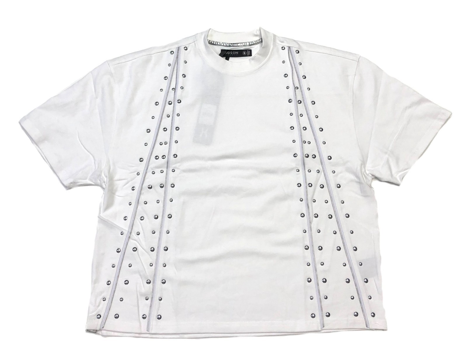 Heavy weight oversized boxy fit tee, Cut and sew, Metal Zipper, Dome stud applique design.
