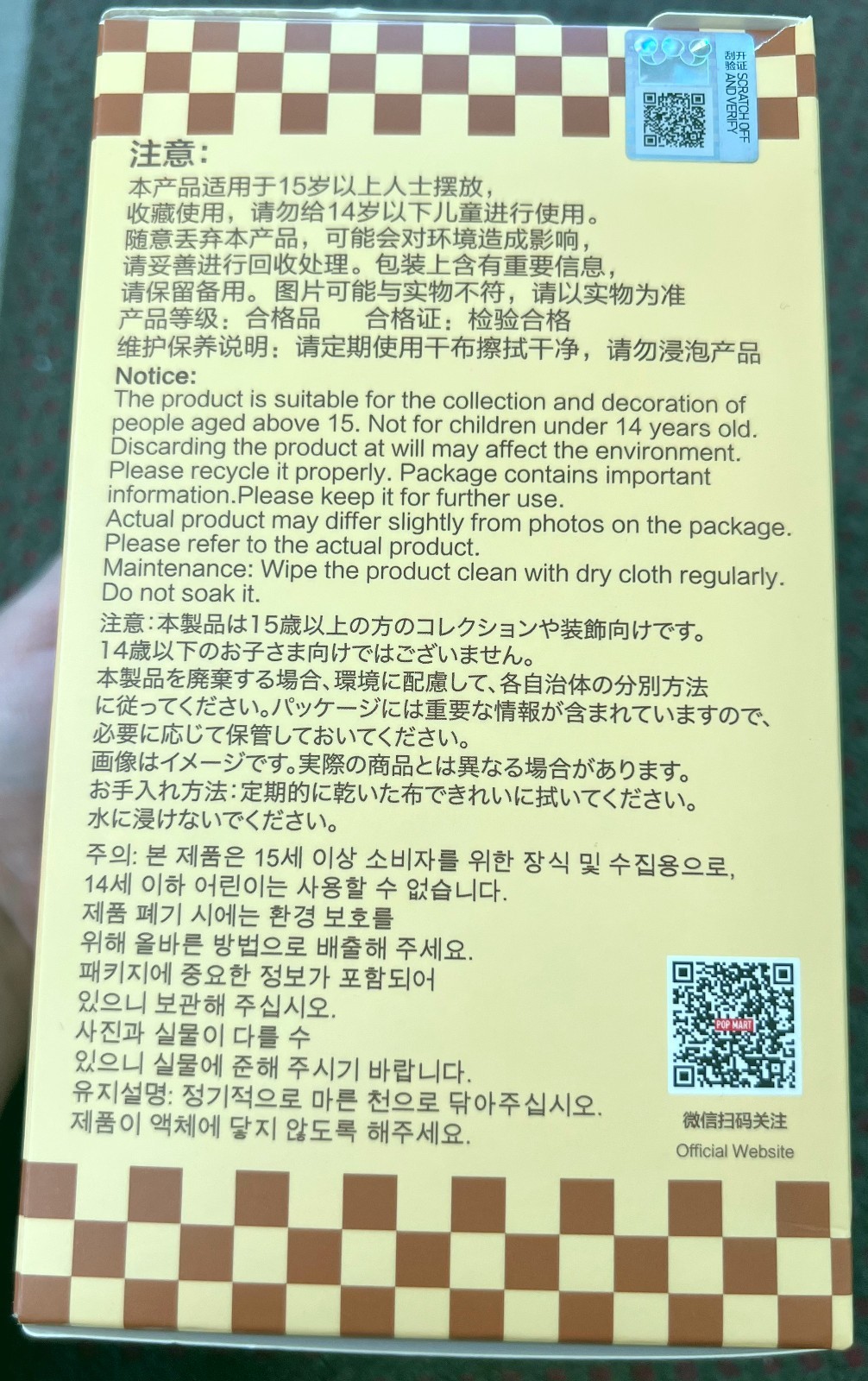 Note: Please be aware that newer batch QR codes are way smaller and more cramped, and printing inconsistencies from the manufacturer can make them harder to scan, sometimes requiring multiple attempts. Unfortunately, this is beyond my control. Be assured that everything is authentic and purchased directly from Pop Mart.