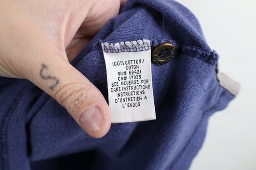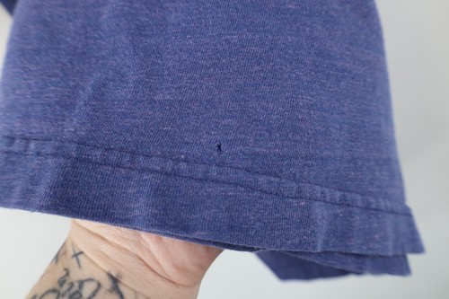 Missing button, buttons tarnished. Hole, loose threads collar. Hole front bottom, side slits. Arms stretched. Loose threads arms, side slits. Collar, arms discolored. Dark spots, pilling. Color faded