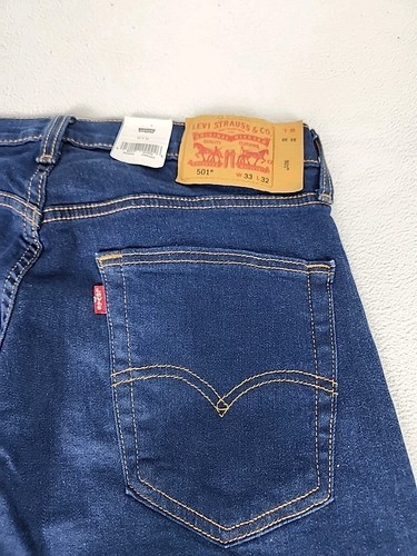 Levi's 501 Regular Fit Button Fly Straight Leg Denim Jeans 33X32 Men's Dark Blue
