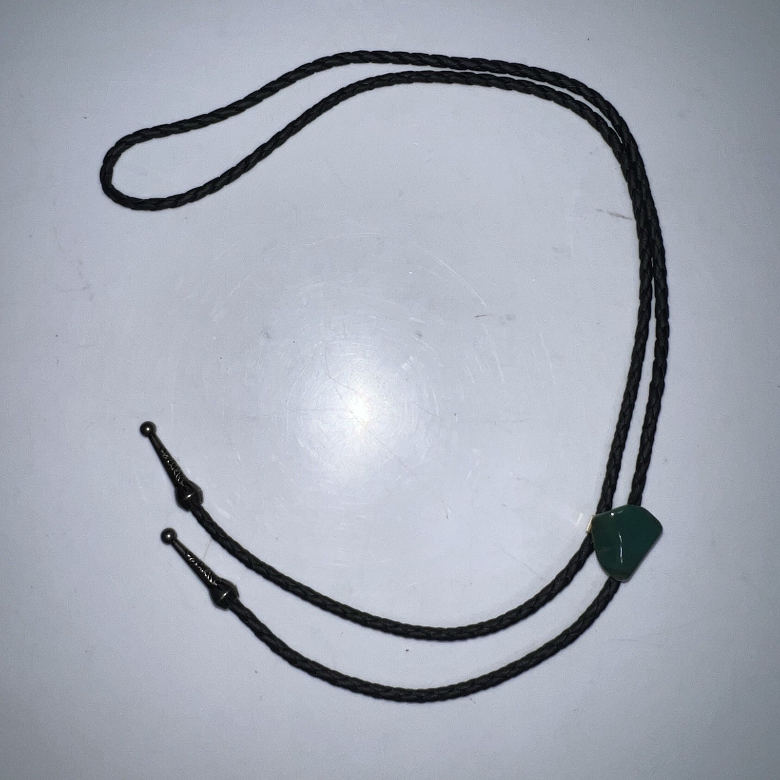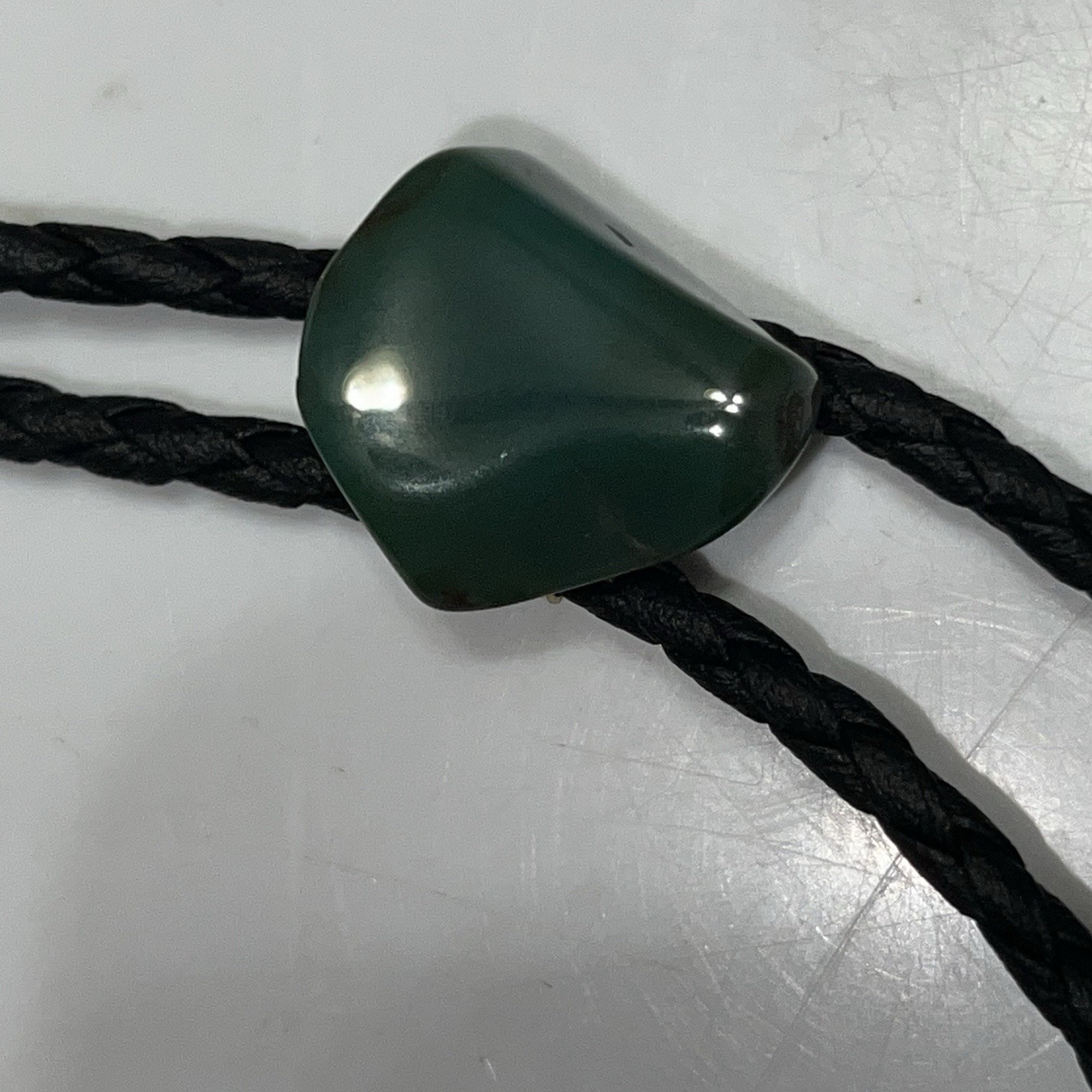 Green Gem Bolo Tie Handmade Braided Vegan Faux Leather Boho Western Necklace